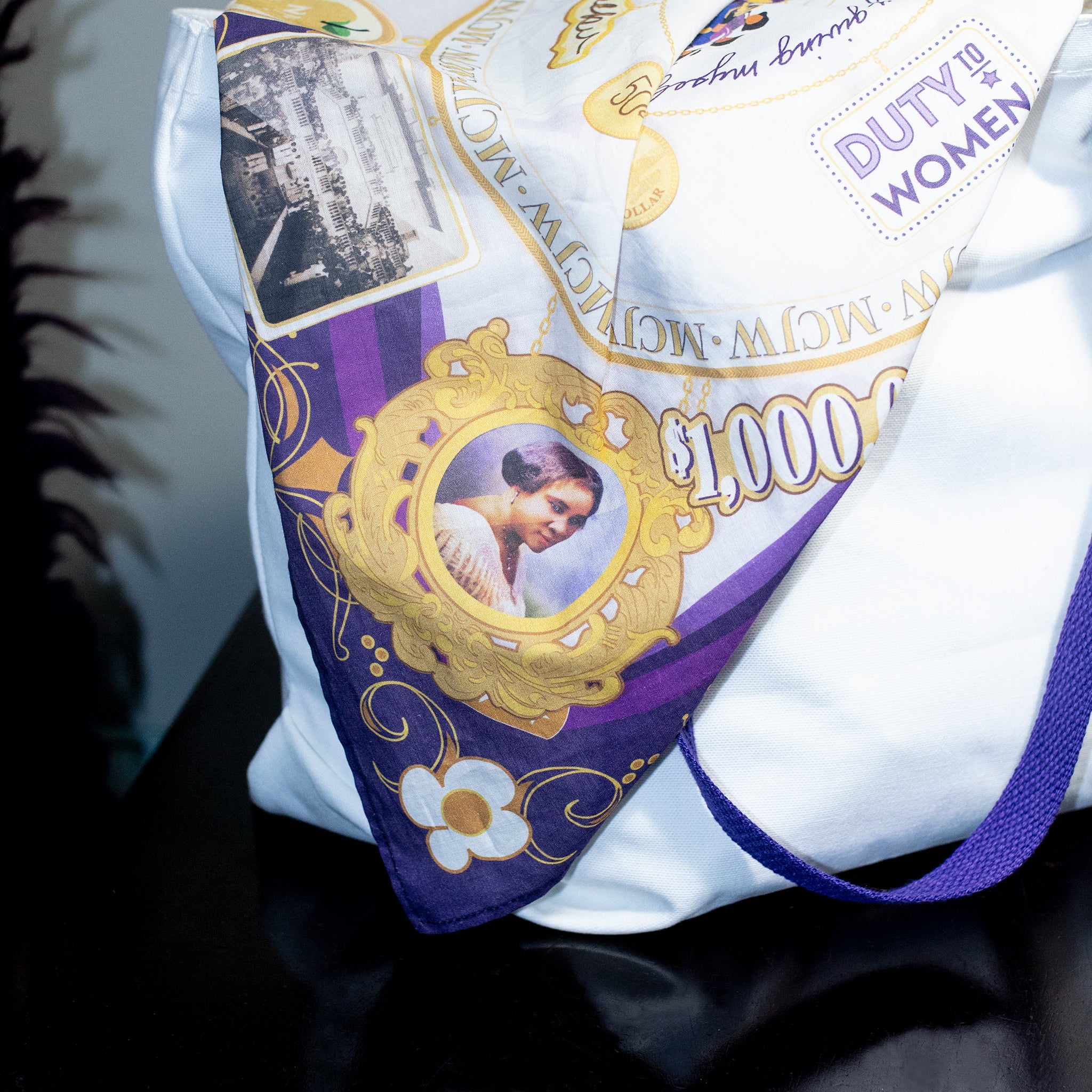 An Archives Store exclusive, we are delighted to offer this delightful bandana in celebration of the achievements of Madam C. J. Walker. Inspired by elements from her life and work, our detailed design pays homage to the extraordinary accomplishments of Madam Walker. Born Sarah Breedlove, she was a daughter of enslaved people, who reimagined her life, and through drive and determination, became the first Black woman millionaire through her line of hair care products.