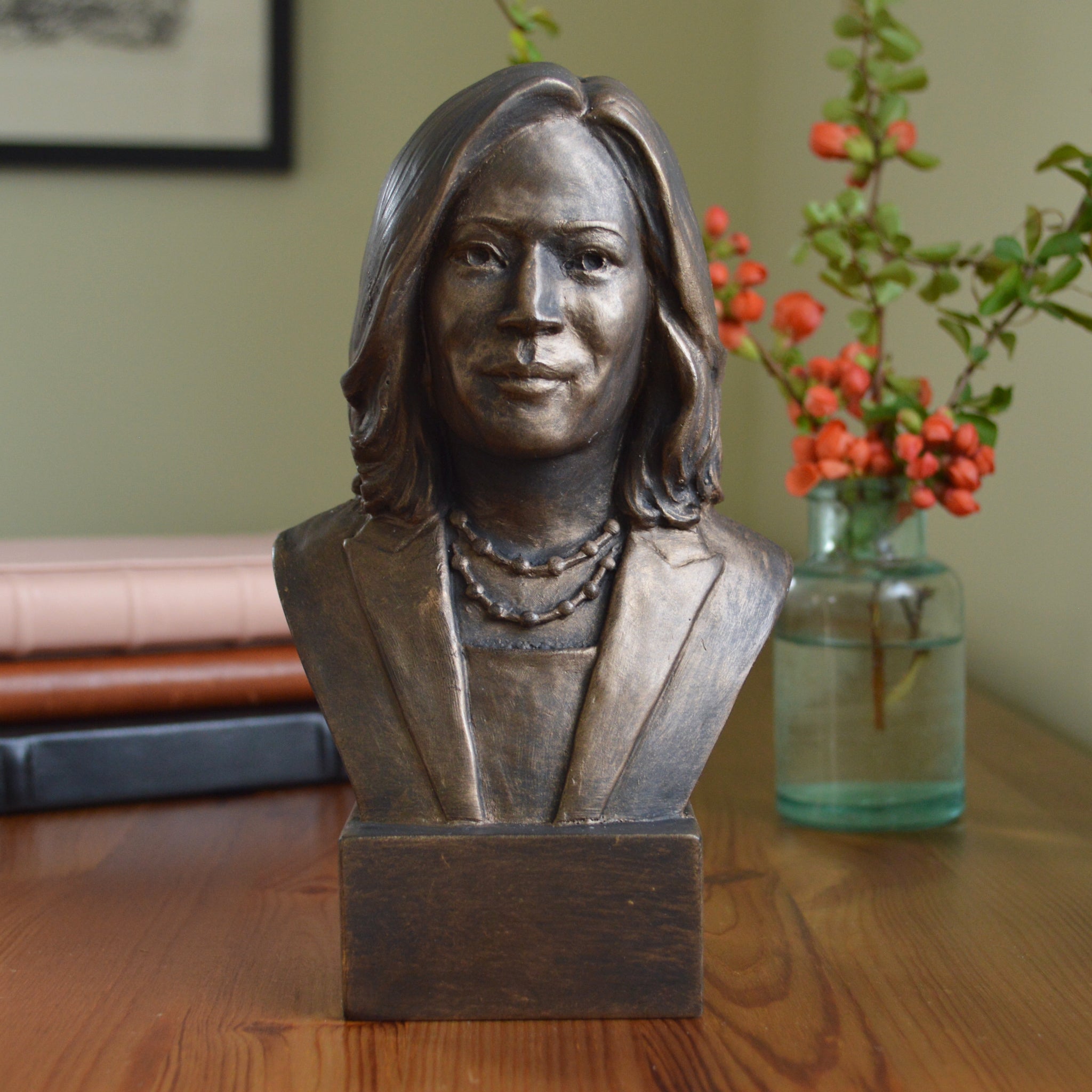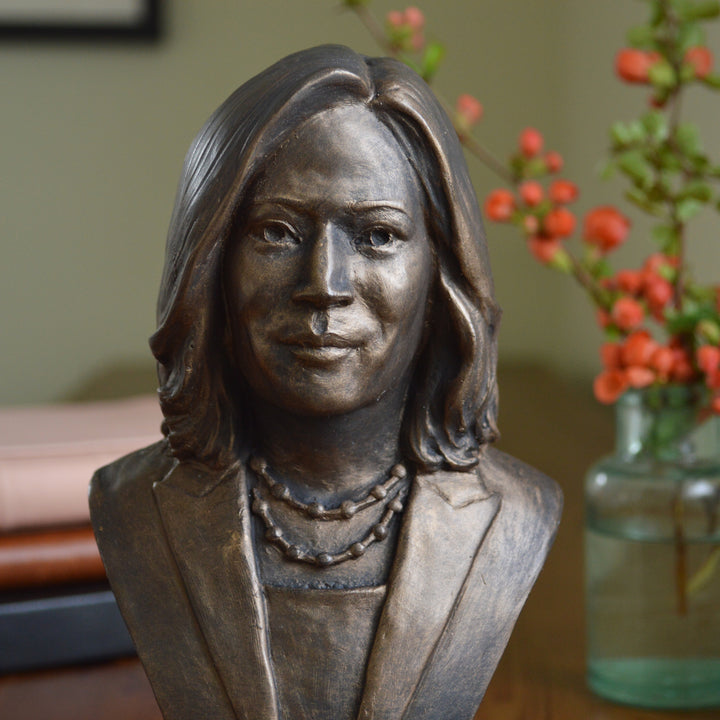 Commemorate the historic event of the first woman being elected to the second-highest leadership position in the government of the United States. This bronze bust of former Vice President Kamala Harris makes a superb addition to decorate at home or in the office. Her likeness reminds us of what can be achieved through hard work, strength and determination.