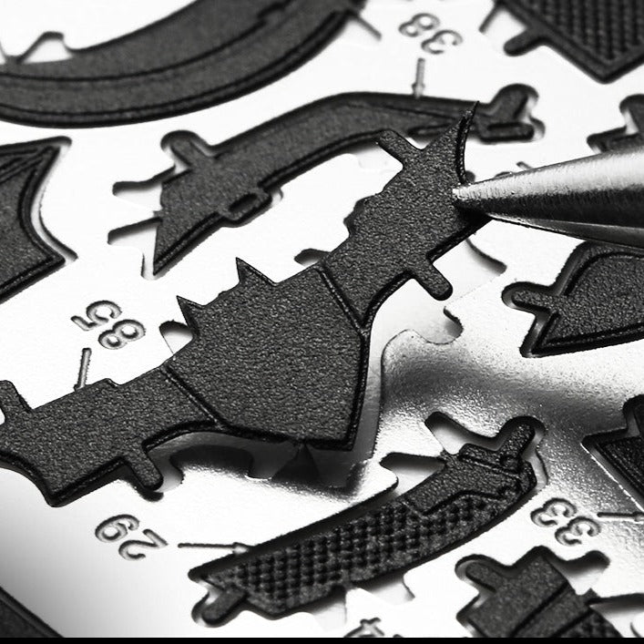 The Bat. The Caped Crusader. The Dark Knight. The World's Greatest Detective. Whatever you call him, Bruce "The Batman" Wayne remains one of the most iconic comic book characters of all time. For generations, Batman has defended Gotham City against evildoers. From his first appearance in 1939, the Caped Crusader has continued to update his look, and that includes the look of his ride. Satisfy your construction urges with this cool metal model. Use the easy-to-follow instructions to pop out the pieces from the 4-inch square steel sheets, bend the tabs, and connect them at the attachment points. No glue required!