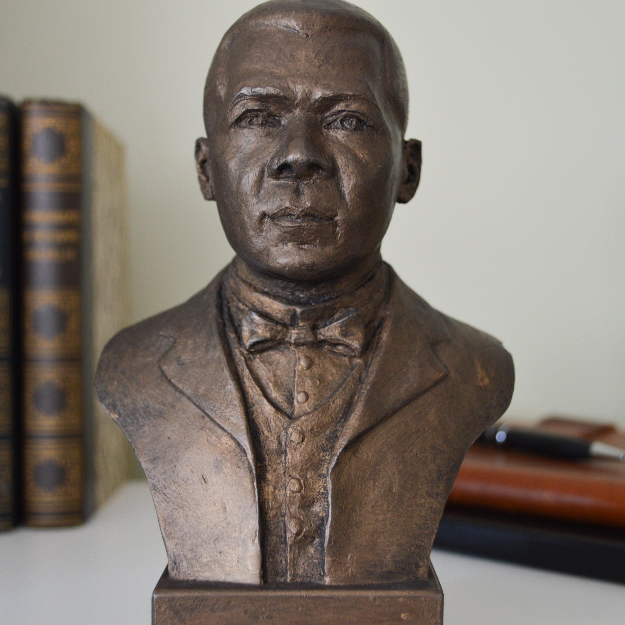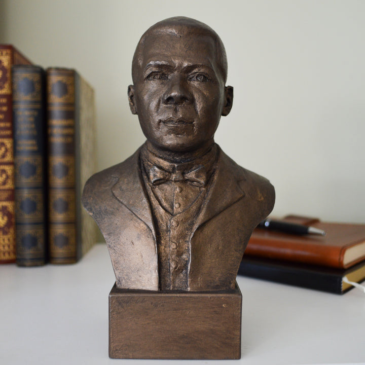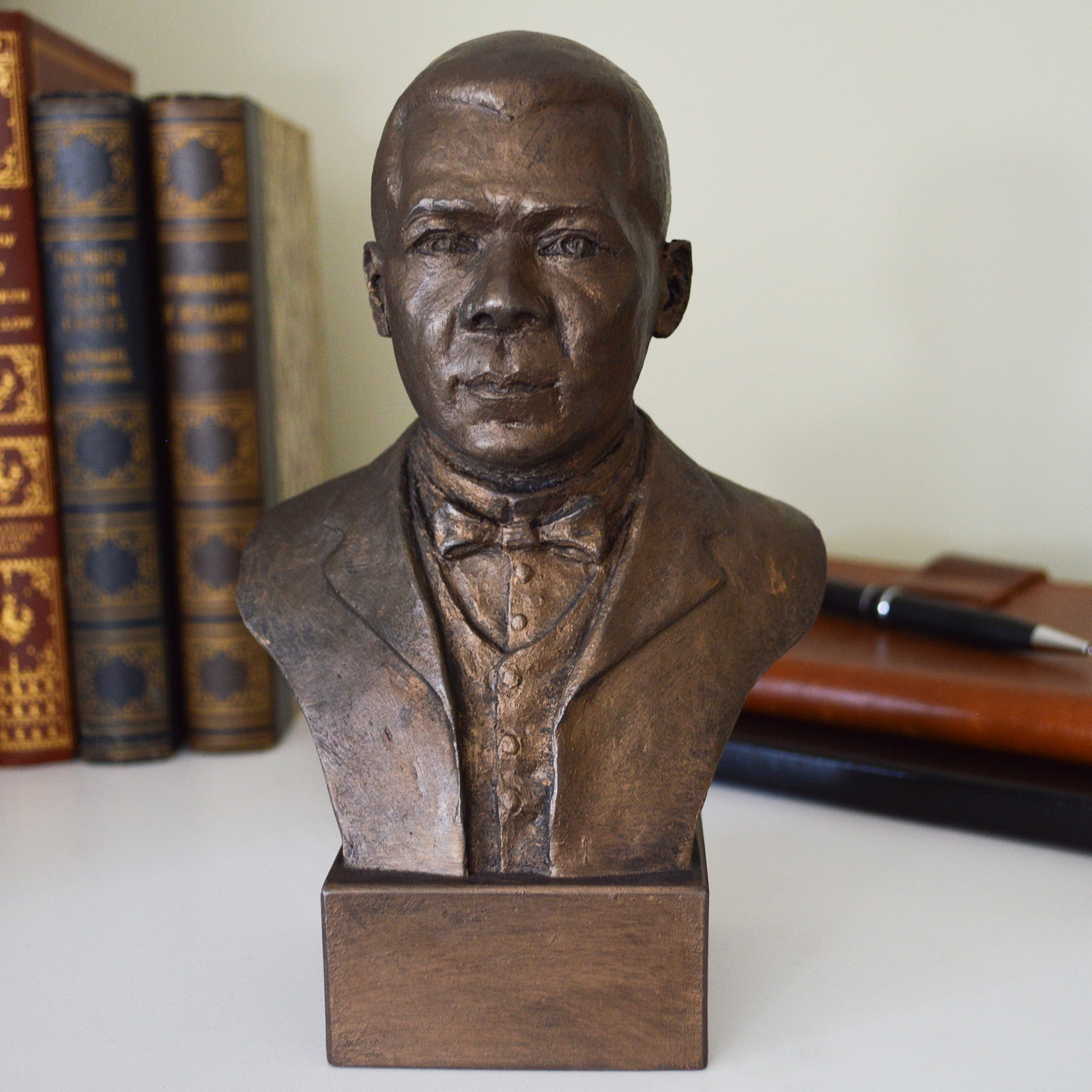 Booker Washington an African American educator, author, orator, was also an advisor to presidents of the United States. This likeness of him in bronze, is a powerful reminder of our nation’s history. It makes an inspirational gift, and a thoughtful addition to desk, office, or bookshelf decor.