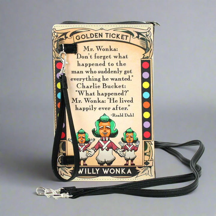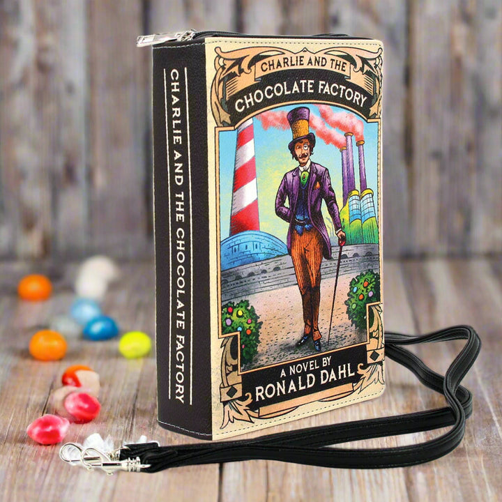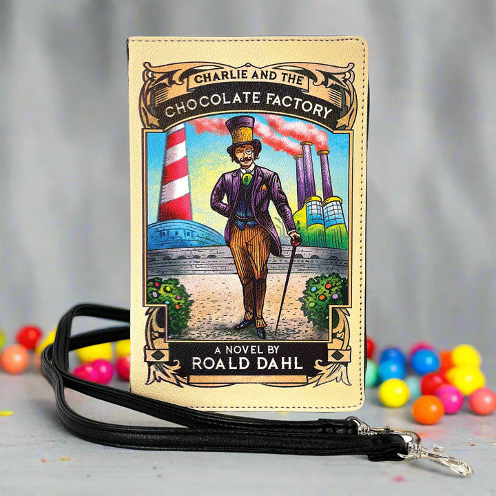 Celebrate the enchanting legacy of Charlie and the Chocolate Factory with the Book Clutch Bag, a delightful accessory that allows you to carry a piece of literary magic with you while adding a touch of playful nostalgia to your everyday adventures. It's made from high-quality vinyl for durability.