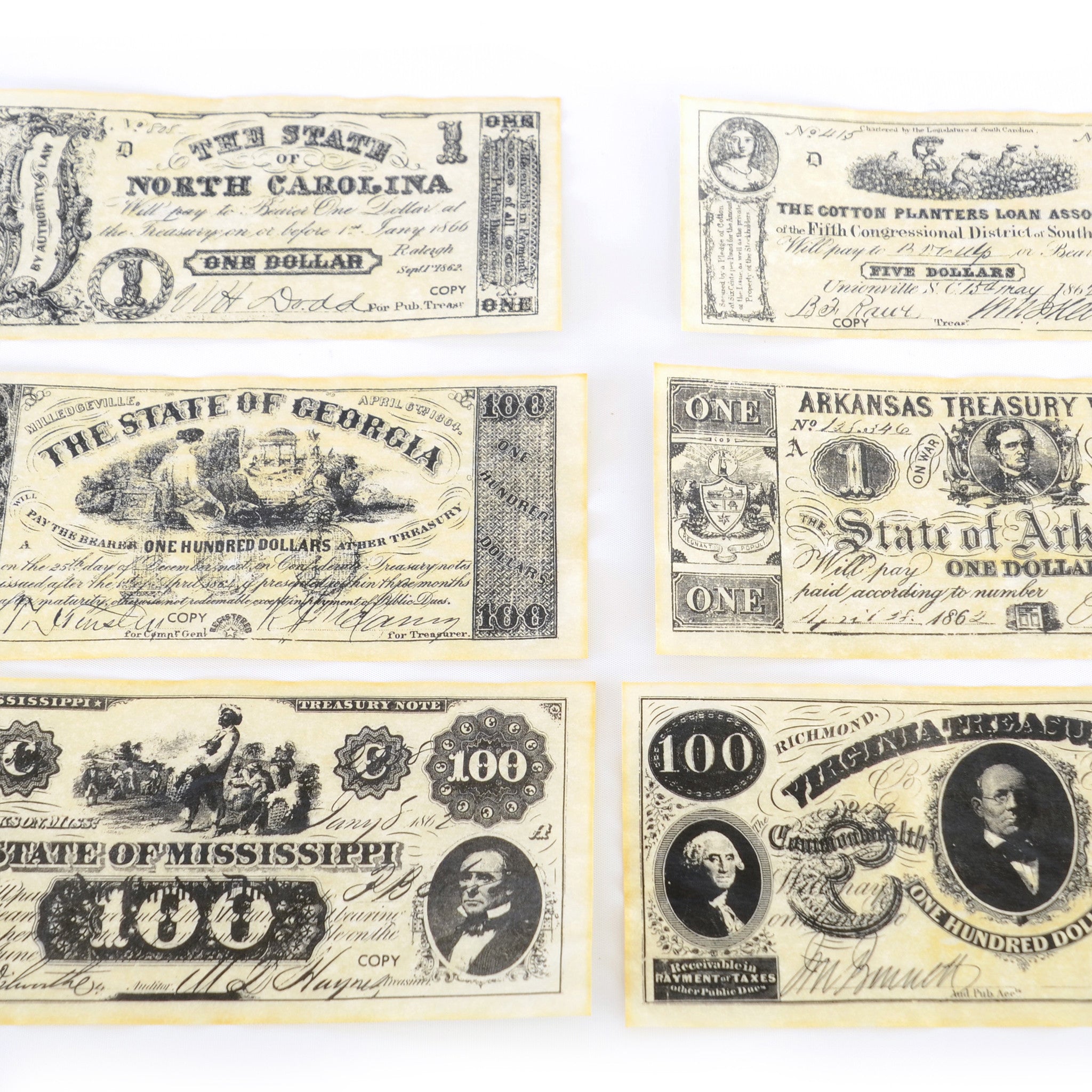 - Facsimiles of Confederate currency
