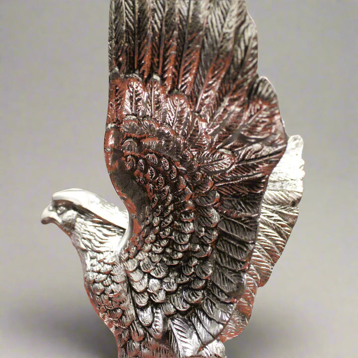 Our stunning bald eagle sculpture is an incredible representation of the national bird of the United States. Made from pewter, detailed features emphasize the eagle’s feathers, wings, and talons. Wherever it lands, this bird of prey is sure to make an impact.