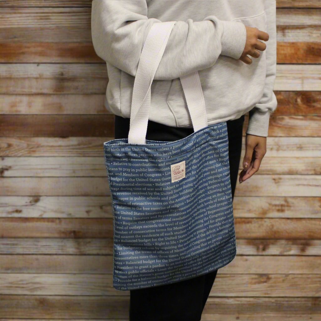 We invite you to take this exclusive, limited edition Amending America Banner Tote Bag on your next shopping spree!