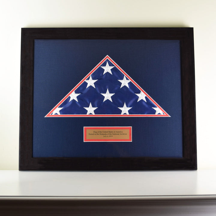 Our exclusive limited edition framed flag is a very special item that we are pleased to offer as a piece of commemorative history. Previously flown in the Rotunda of the National Archives, the flag is beautifully framed and ready to display. This is a wonderfully patriotic piece that makes a terrific gift or a stunning addition to your own space.