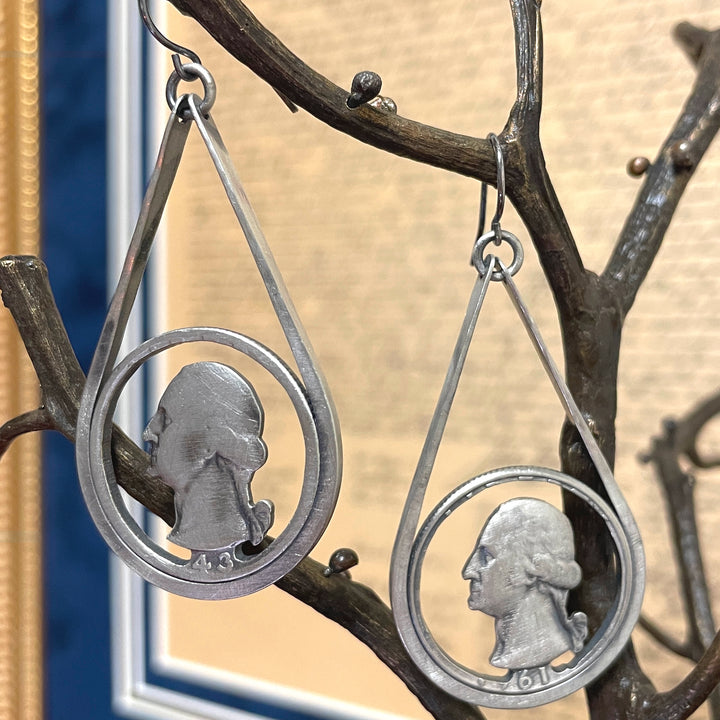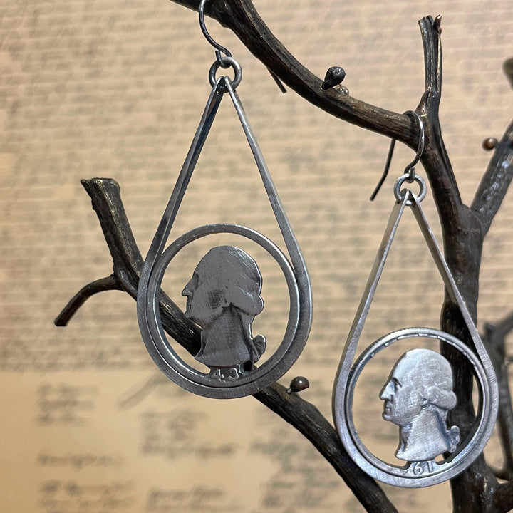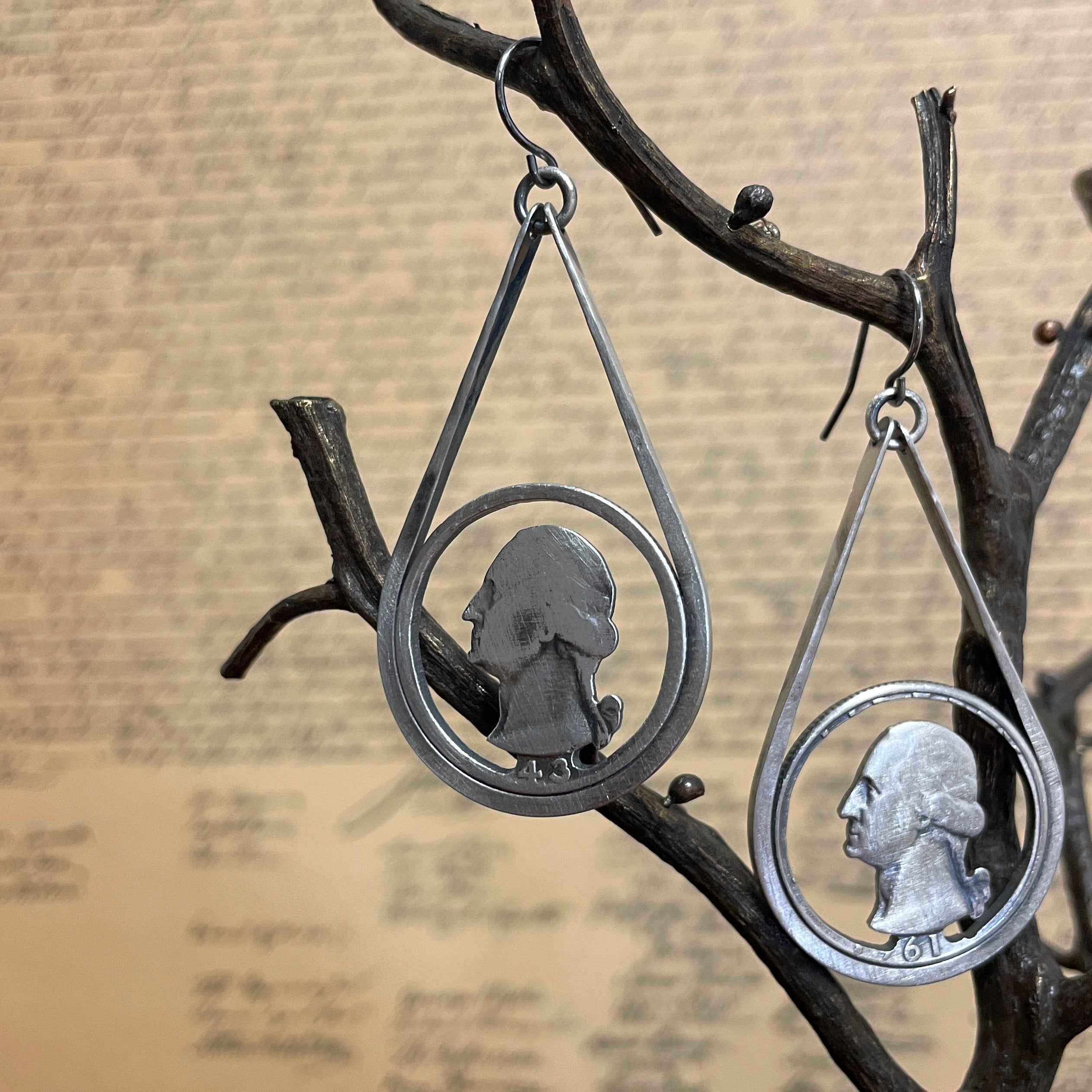 These striking earrings are made from sterling silver casts of a Washington quarter dollar coin. Instantly recognizable as our OG POTUS, they make a wonderful gift or a special keepsake for yourself!