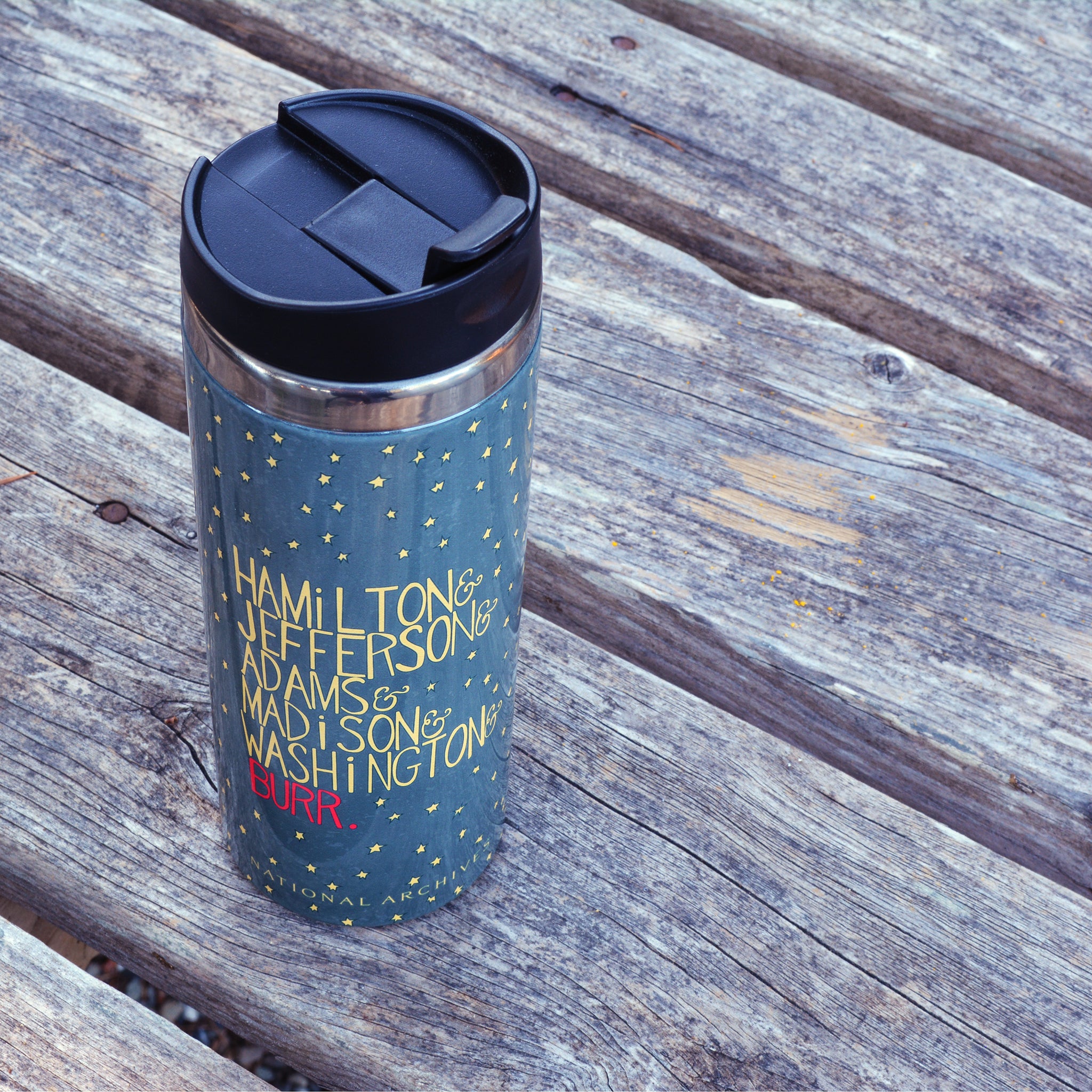 Grab some of that Hamilton: An American Musical vitality as you start your day. This is the perfect travel mug for hot coffee in the morning or for refreshing cold drinks on warm days. Insulated stainless steel means your drink keeps its preferred temperature, and it is very easy to clean.