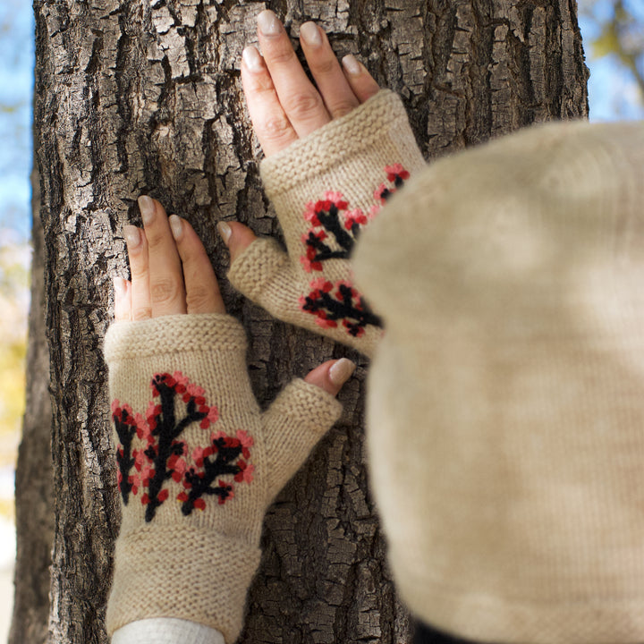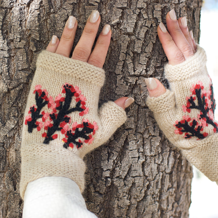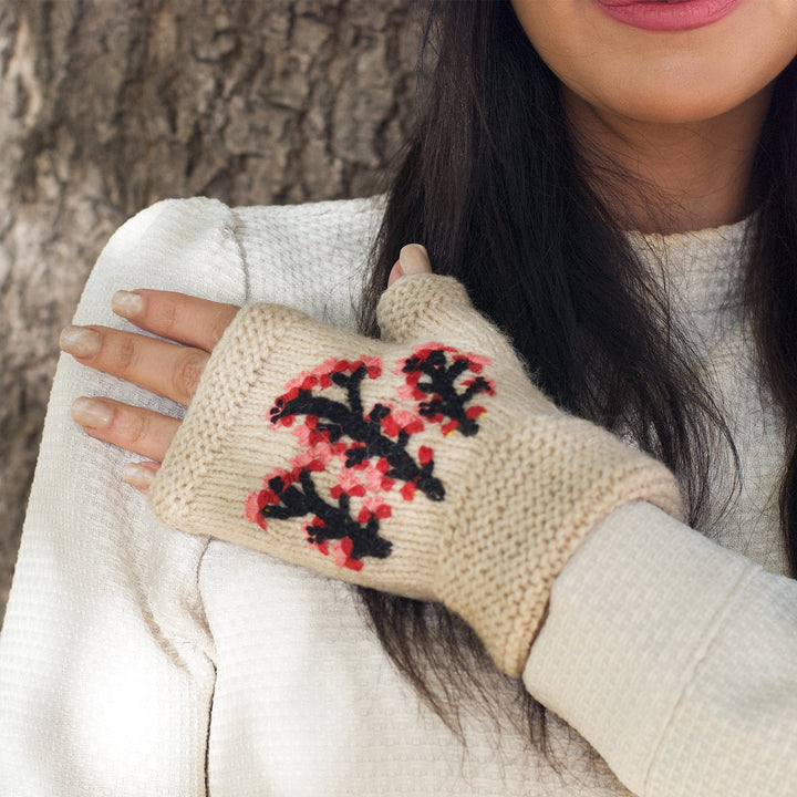 Handknit Cherry Blossom Fingerless Mittens
