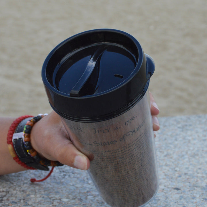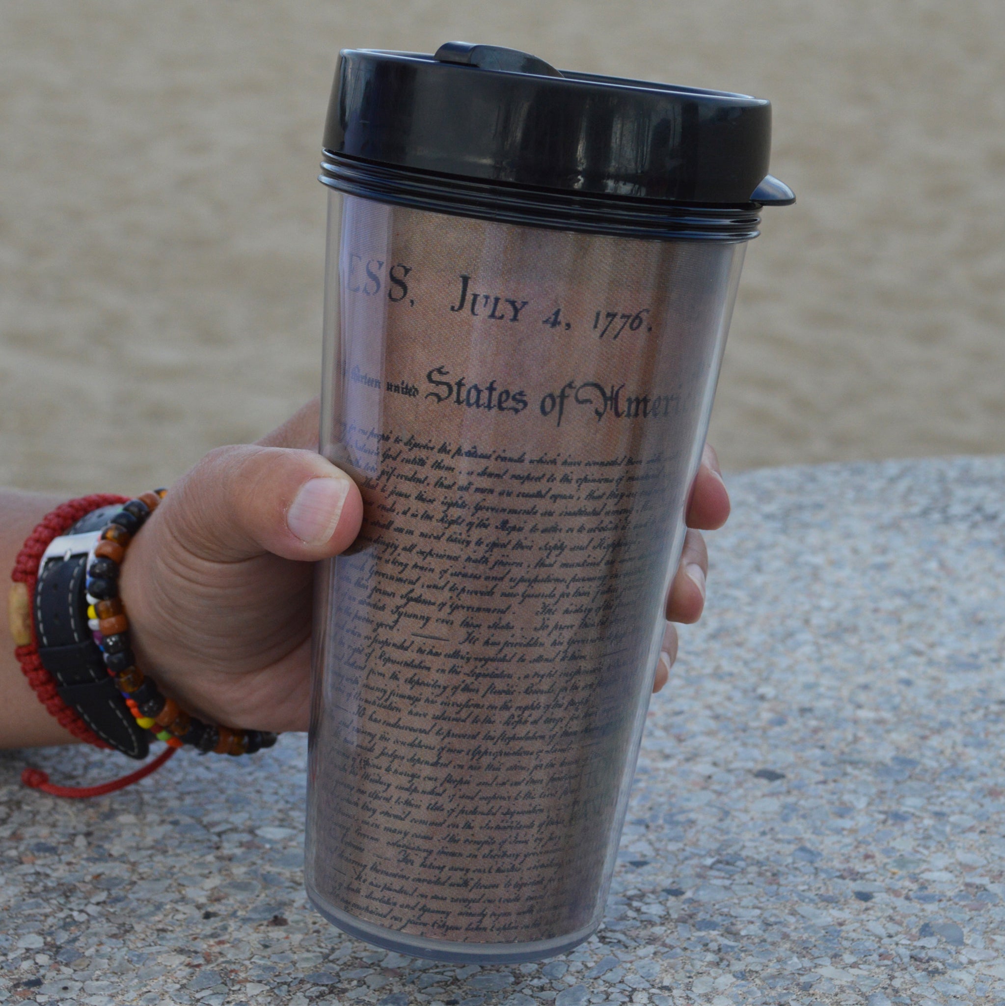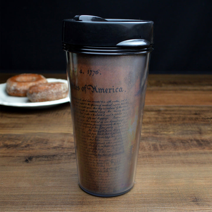 The movie National Treasure is one which has long captivated movie lovers’ imaginations. Rumored to be required watching to be eligible to work at the National Archives Foundation, we can’t get enough of Benjamin Franklin Gates and are pleased to offer this fun travel mug. Show your enthusiasm for the National Archives and its special treasures while you are out and about.