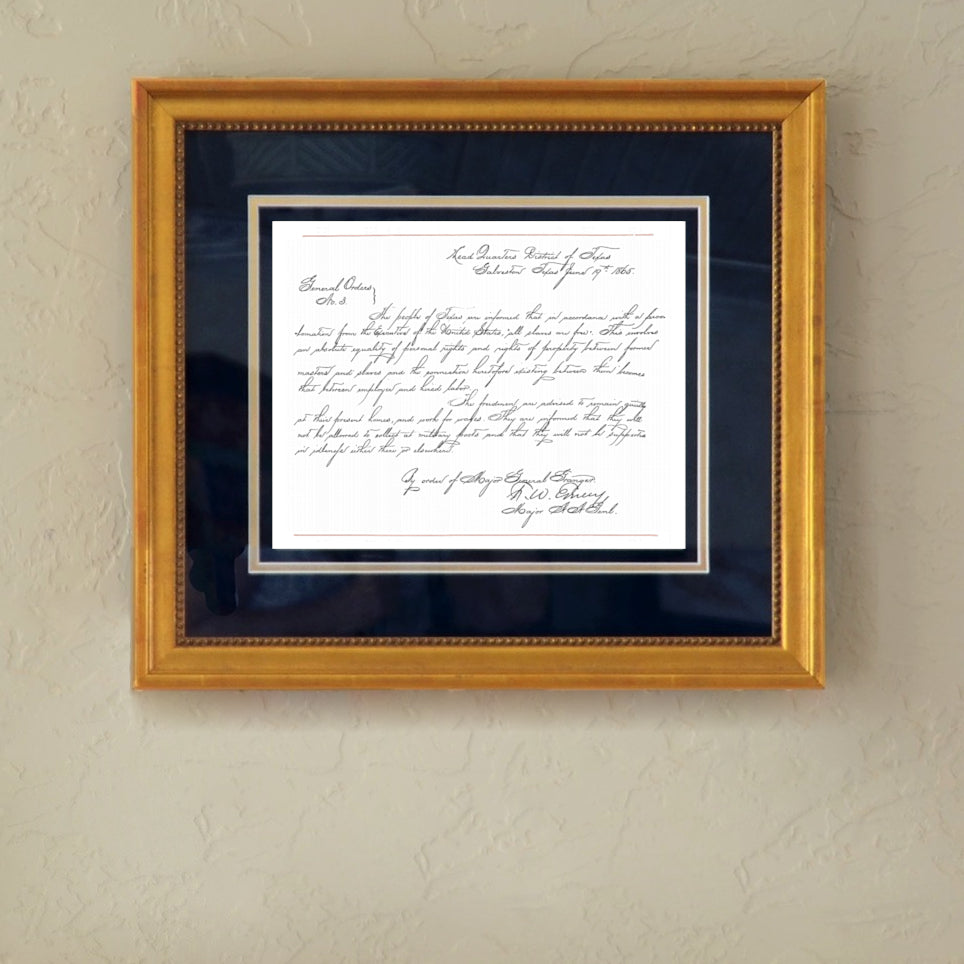 This unframed reproduction was made exclusively for the National Archives Store. It depicts the handwritten record of General Order No. 3, which on June 19, 1865 announced to the citizens of Texas that all enslaved people were now free. This remastered piece deserves to be shown at any time of year and is a great tool for educators and classrooms.