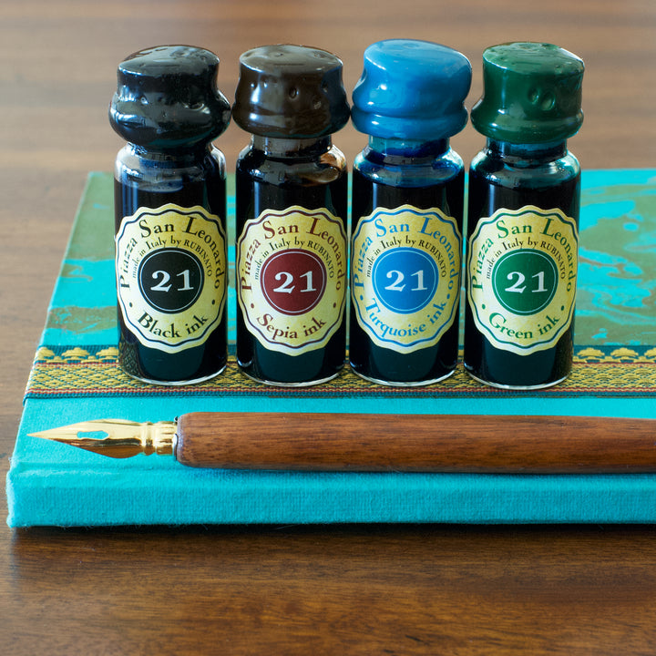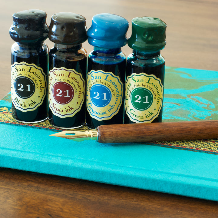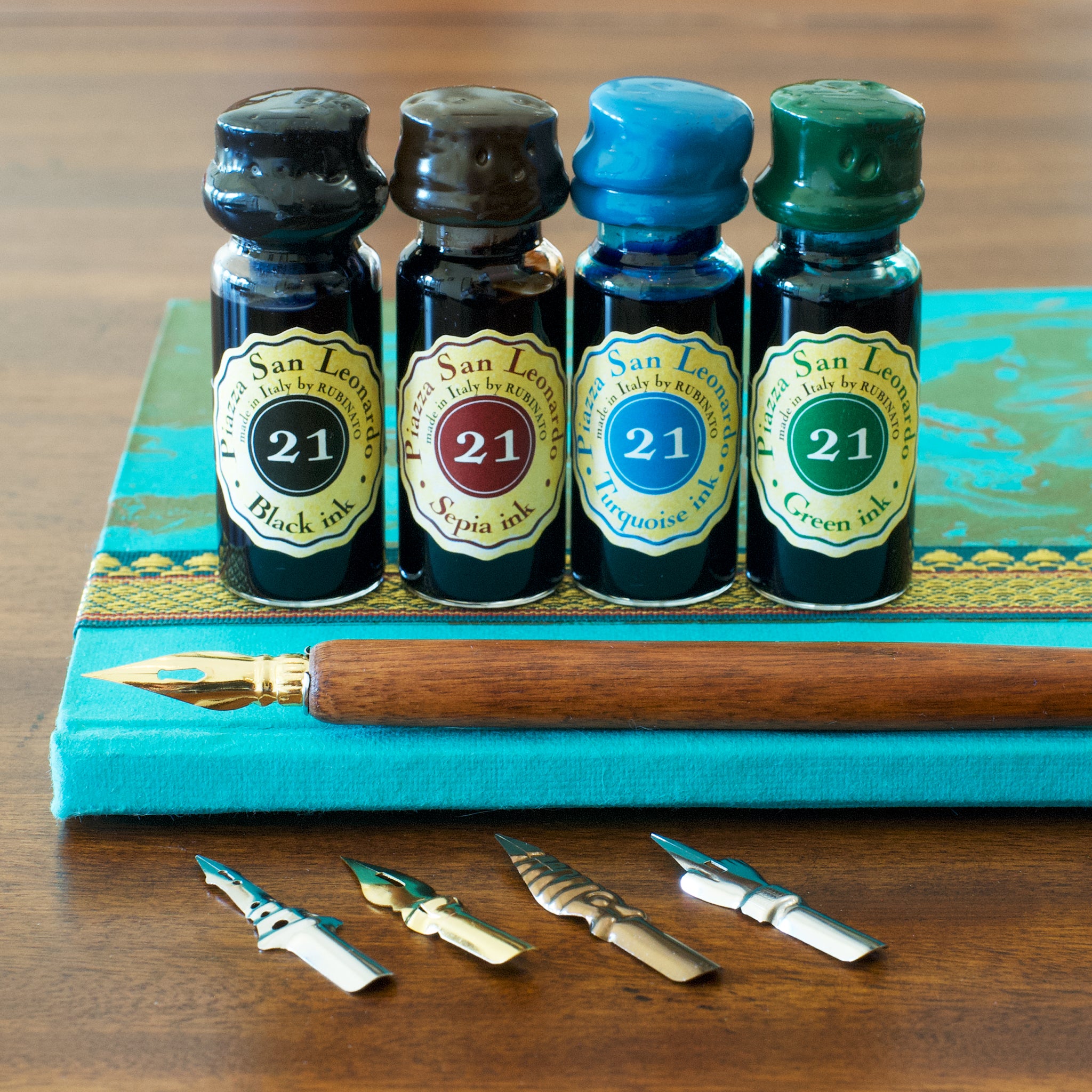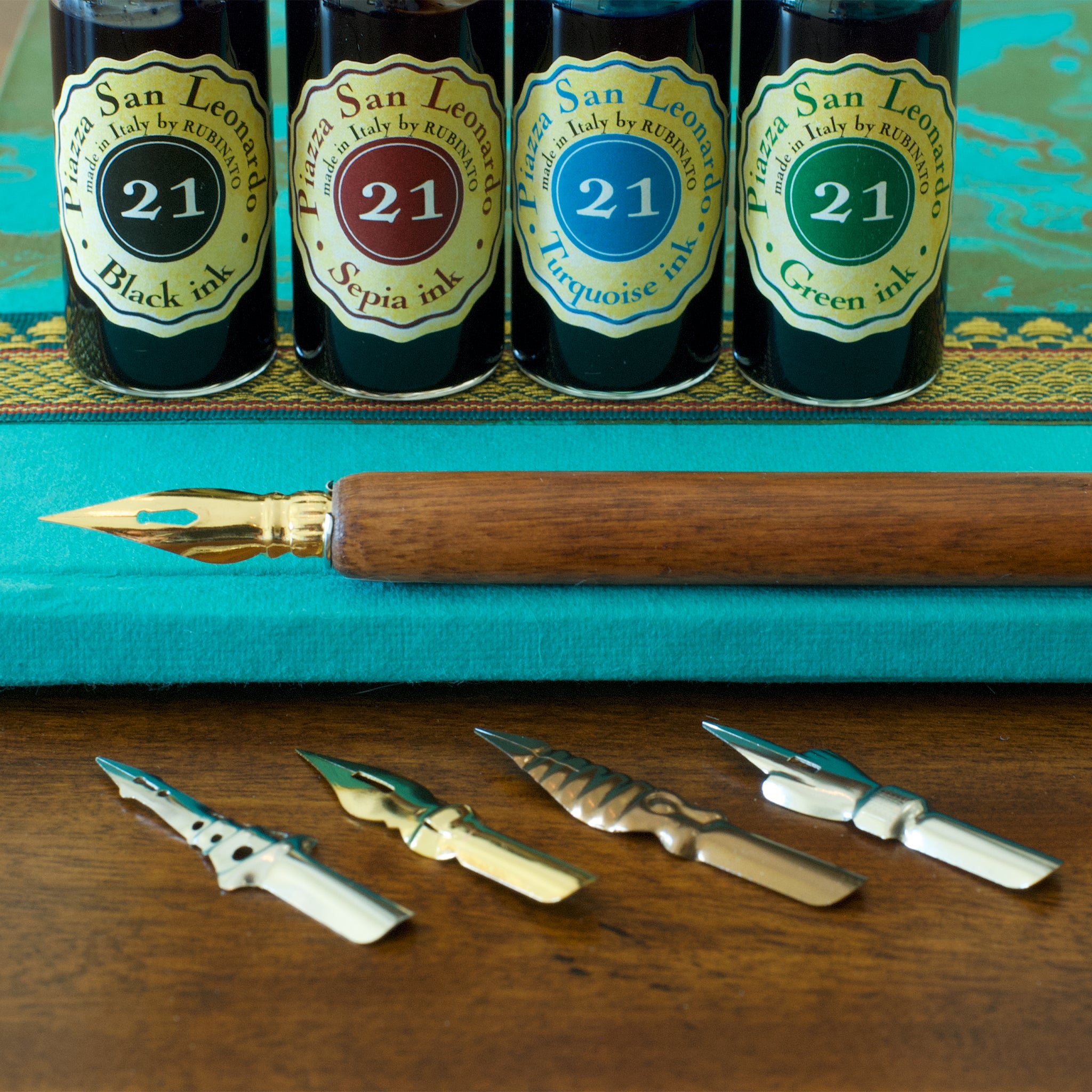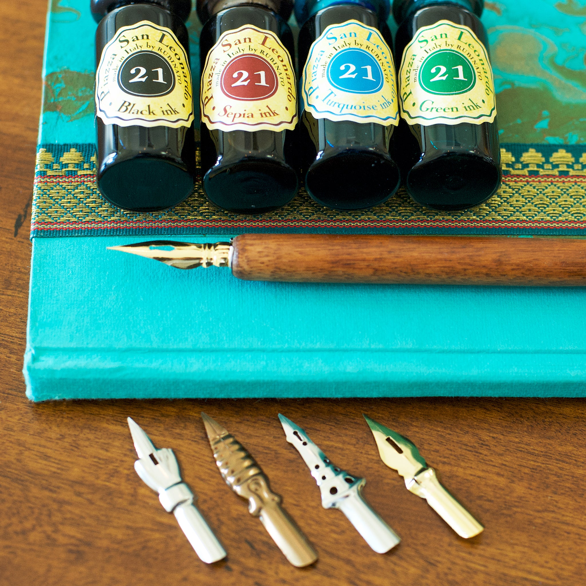 A wonderful gift, this eye catching wooden pen set with four nibs and inks is a stunning piece for home or office. Great for practicing calligraphy and penmanship, it is a delightful reminder of the skill involved in fine handwriting and the importance of keeping traditions alive.